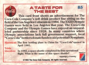 Coca-Cola CollezionismoCard Coca-Cola USA n. 85 – A Taste for the Best 1984 – Trivia Card 1993 ed. Marketed