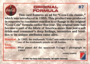 Coca-Cola CollezionismoCard Coca-Cola USA n. 87 – Original Formula 1985 – Trivia Card 1993 ed. Marketed