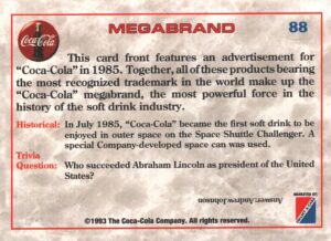 Coca-Cola CollezionismoCard Coca-Cola USA n. 88 – Megabrand 1985 – Trivia Card 1993 ed. Marketed