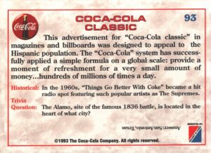 Coca-Cola CollezionismoCard Coca-Cola USA n. 93 – Coca-Cola Classic 1987 – Trivia Card 1993 ed. Marketed