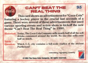 Coca-Cola CollezionismoCard Coca-Cola USA n. 95 – Can’t beat the real thing 1990 – Trivia Card 1993 ed. Marketed