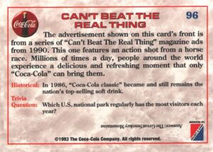 Coca-Cola CollezionismoCard Coca-Cola USA n. 96 – Can’t beat the real thing 1990 – Trivia Card 1993 ed. Marketed