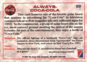 Coca-Cola CollezionismoCard Coca-Cola USA n. 99 – Always Coca-Cola 1993 – Trivia Card 1993 ed. Marketed