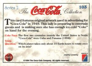 Coca-Cola CollezionismoCard The Coca-Cola Collection – Series 2 USA n. 103 – Trivia Card 1994 ed. Marketed