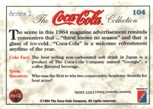 Coca-Cola CollezionismoCard The Coca-Cola Collection – Series 2 USA n. 104 – Trivia Card 1994 ed. Marketed