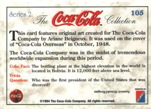 Coca-Cola CollezionismoCard The Coca-Cola Collection – Series 2 USA n. 105 – Trivia Card 1994 ed. Marketed
