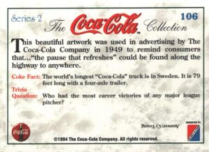 Coca-Cola CollezionismoCard The Coca-Cola Collection – Series 2 USA n. 106 – Trivia Card 1994 ed. Marketed