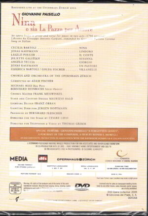 Nina o sia La Pazza Per Amore. Giovanni Paisiello. Opera completa (2 DVD) Cecilia Bartoli (Edizione PAL Regione 2, Lingua Italiano, Sottotitoli inglese, francese…)