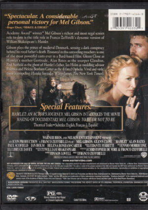 DVDHamlet con Mel Gibson. DVD Edizione Stati Uniti NTSC Regione 1, Lingua Inglese. Custodia Snapper
