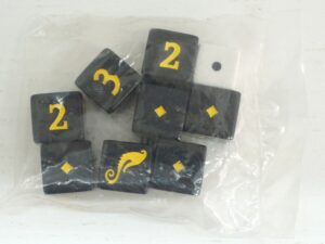 Altri Giochi di RuoloSet n. 9 Dadi a 6 facce Neri con simboli dorati e bianco con simboli neri.