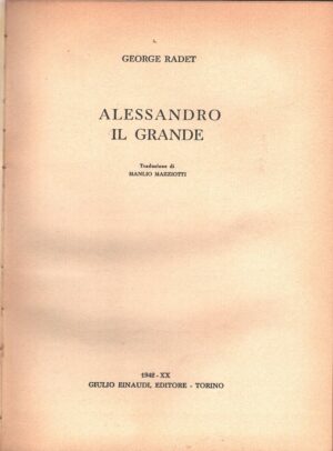 Alessandro il grande di Georges Radet ed. Einadi (1942)