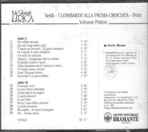 CD MusicaliI LOMBARDI ALLA PRIMA CROCIATA. Vol.1 Giuseppe Verdi. Mario Petri CD Audio