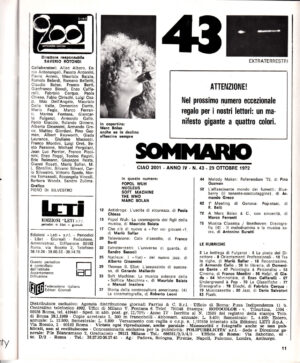 Musica RivisteRivista Ciao 2001 Anno 1972 n. 43 del 29 Ottobre NON COMPLETA – In copertina Marc Bolan