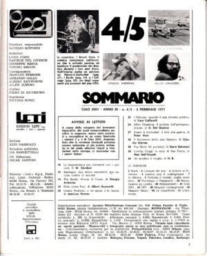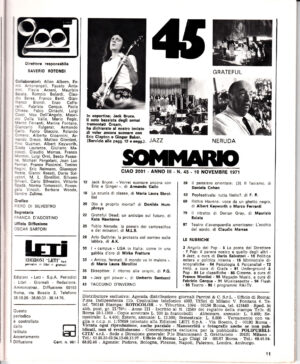 Musica RivisteRivista Ciao 2001 Anno 1971 n. 45 del 10 Novembre – In copertina Jack Bruce