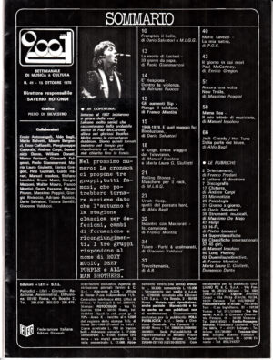 Musica RivisteRivista Ciao 2001 Anno 1978 n. 46 del 19 Novembre – In copertina Mauro Pagani e Ian Dury