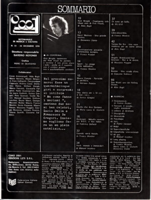 Musica RivisteRivista Ciao 2001 Anno 1978 n. 52 del 31 Dicembre – In copertina Lucio Dalla e Francesco De Gregori
