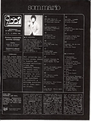 Musica RivisteRivista Ciao 2001 n. 15 del 13 Aprile 1980 – In copertina Billy Joel