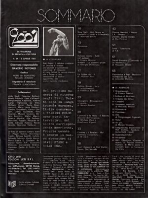 Musica RivisteRivista Ciao 2001 n. 3 del 18 Gennaio 1981 – In copertina Talking Heads