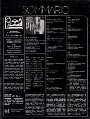 Musica RivisteRivista Ciao 2001 n. 22 del 31 Maggio 1981 – In copertina Bob Marley