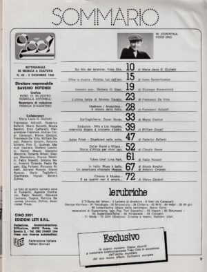 Musica RivisteRivista Ciao 2001 n. 49 del 5 Dicembre 1982 – In copertina Yoko Ono