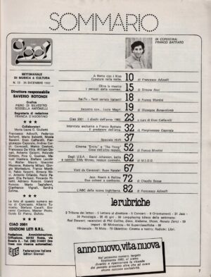 Musica RivisteRivista Ciao 2001 Anno 1982 n. 52 del 26 Dicembre – In copertina Franco Battiato