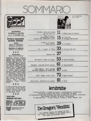 Musica RivisteRivista Ciao 2001 n. 44 del 31 Ottobre 1982 – In copertina Billy Joel