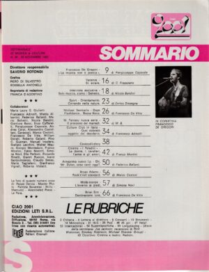 Musica RivisteRivista Ciao 2001 Anno 1983 n. 46 del 20 Novembre – In copertina Francesco De Gregori