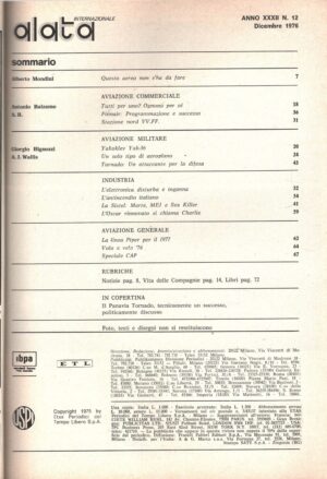 Rivista Alata internazionale n. 12 – Dicenbre 1976 – In copertina Panavia Tornado ed. Ed.A.I.
