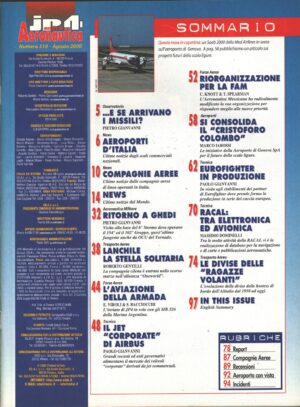 Rivista JP4 Aeronautica n. 8 – Agosto 2000 – In copertina Saab 2000 ed. A.I.