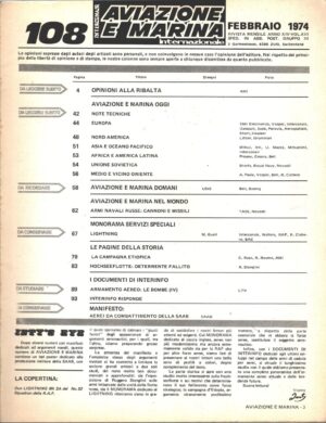 Rivista Aviazione e Marina n. 108 – Febbraio 1974 – In copertina Lighting Mk 2A ed. Interconair
