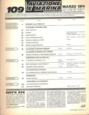 Rivista Aviazione e Marina n. 109 – Marzo 1974 – In copertina General Dynamics YF-16 caccia leggero ed. Interconair