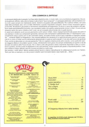 Rivista Raids n. 171 – Ottobre 2001 – In copertina Operatore del Col Moschin ed. Albertelli