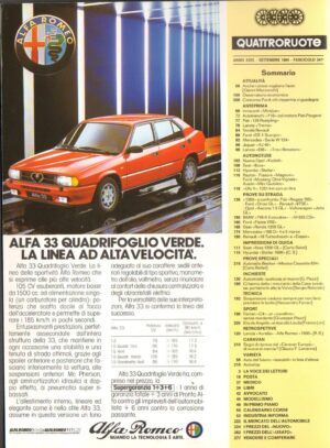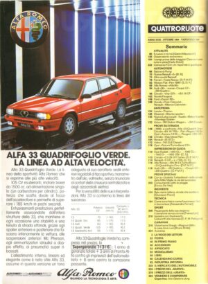 Motori - Auto RivisteQuattroruote n. 348 Ottobre 1984 – Alfa 33 Quadrifoglio, BX 16 TRS, Regata 100 S