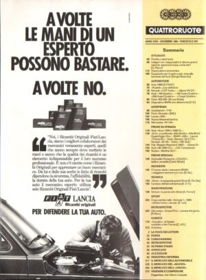 Motori - Auto RivisteQuattroruote n. 350 Dicembre 1984 – Alfa 90, Lancia Thema, Seat Ibiza, Fiat Regata