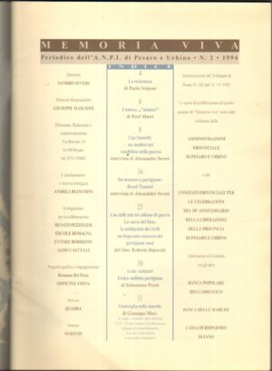 Politica e Societa' RivisteRivista Memoria Viva n. 2 anno 1994 – Periodico dell’ A.N.P.I. di Pesaro Urbino