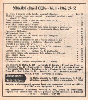Rivista Oltre il Cielo n. 61 del 1-15 Giugno 1960 ed. Esse