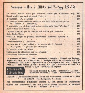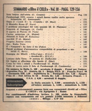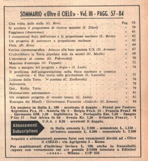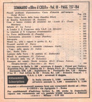 Rivista Oltre il Cielo n. 59 del 1-15 Maggio 1960 ed. Esse
