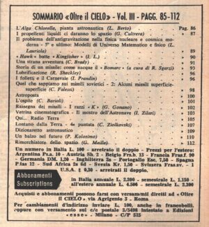 Rivista Oltre il Cielo n. 85 del 1-15 Luglio 1961 ed. Esse