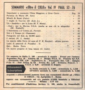 Rivista Oltre il Cielo n. 54 del 1-29 Febbraio 1960 ed. Esse