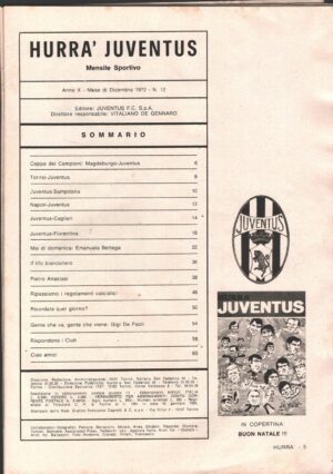 Hurrà Juventus n. 12 – Dicembre 1972 – In copertina Buon Natale dalla Juventus