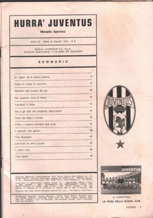 Hurrà Juventus n. 8 – Agosto 1973 – In copertina la rosa della nuova Juventus