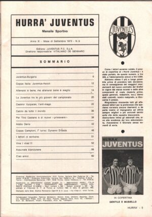 Hurrà Juventus n. 9 – Settembre 1973 – In copertina Gentile, Musiello