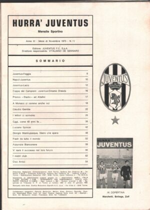Hurrà Juventus n. 11 – Novembre 1973 – In copertina Marchetti, Bettega, Zoff