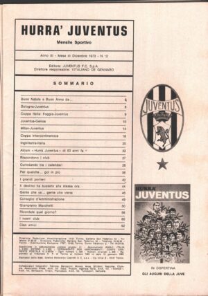 Hurrà Juventus n. 12 – Dicembre 1973 – In copertina Gli auguri della Juve