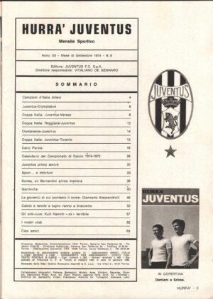 Hurrà Juventus n. 9 – Settembre 1974 – In copertina Damiani, Scirea